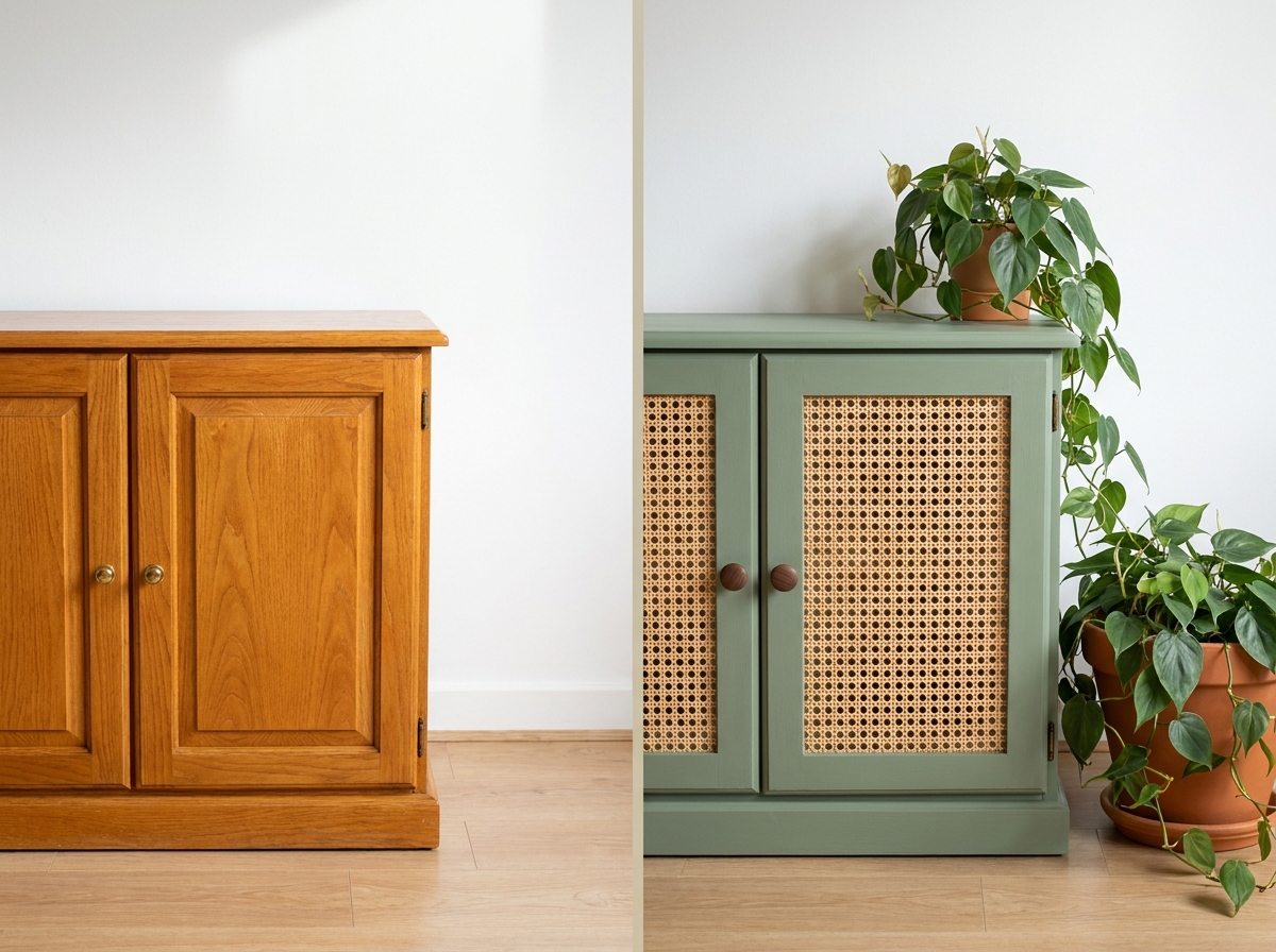 - Remove a door — or swap it for caning, reeded glass, or chicken wire. Changes the piece without any paint at all.