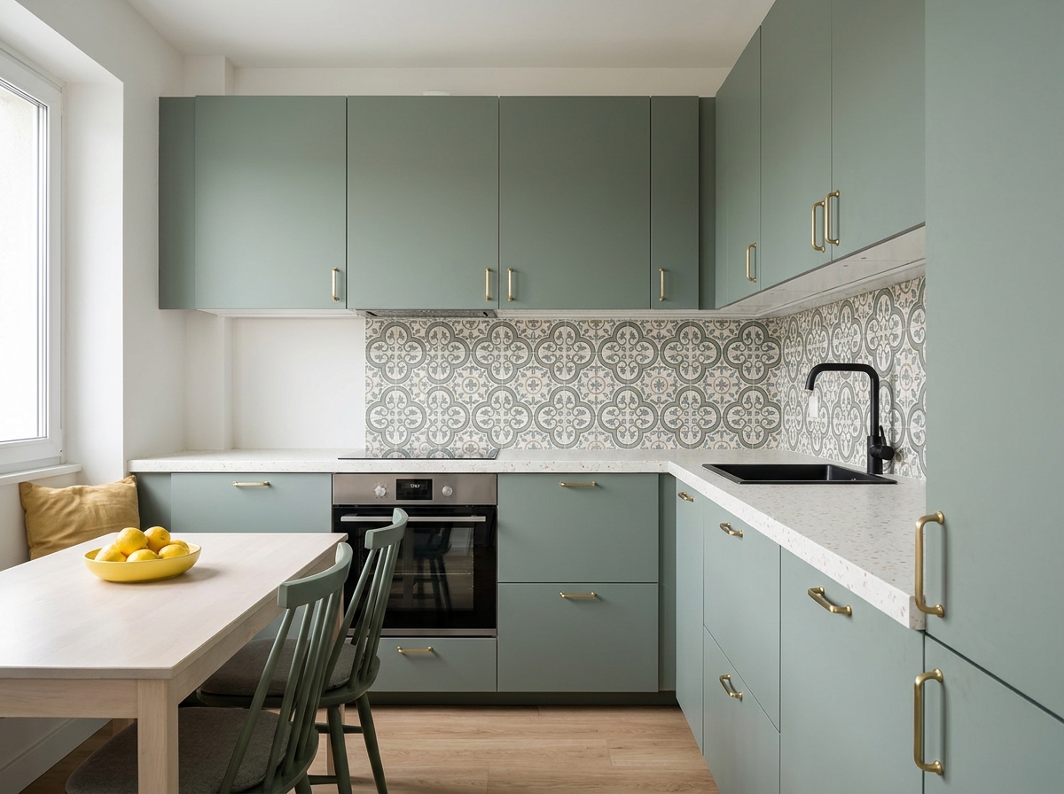 Pienen keittiön remontti 2026 ilman seinien ja runkojen rikkomista etenee neljässä tasossa: 150 €, 600 €, 1 800 €, 3 500 € — maalaus, vetimet ja tarravälitila, tason pinnoitus, ovet uusiksi. Kokeile 10 tyyliä omassa keittiössäsi Homeifyssa ennen kuin käytät 12 000 € uuteen kalusteeseen.